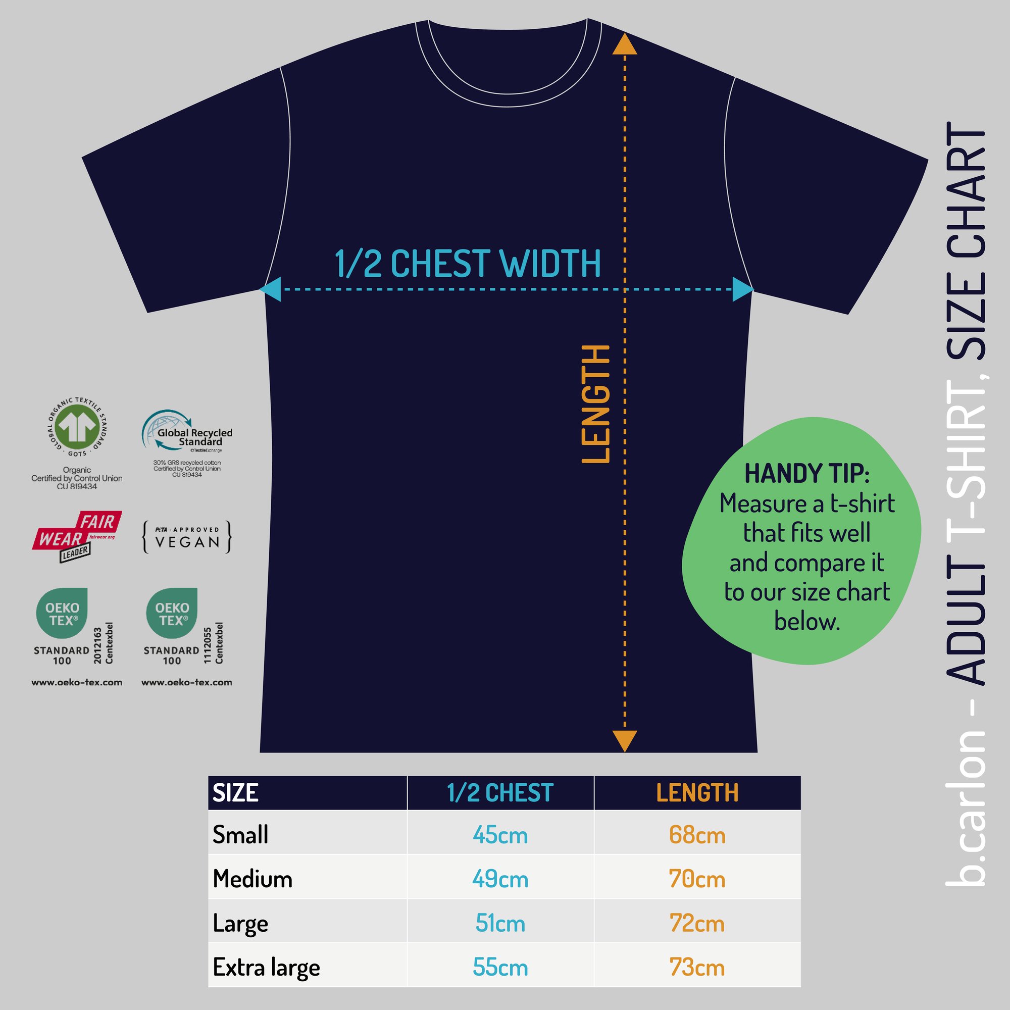 EXTRA LARGE --- Half chest = 55cm, extra large length = 74cm